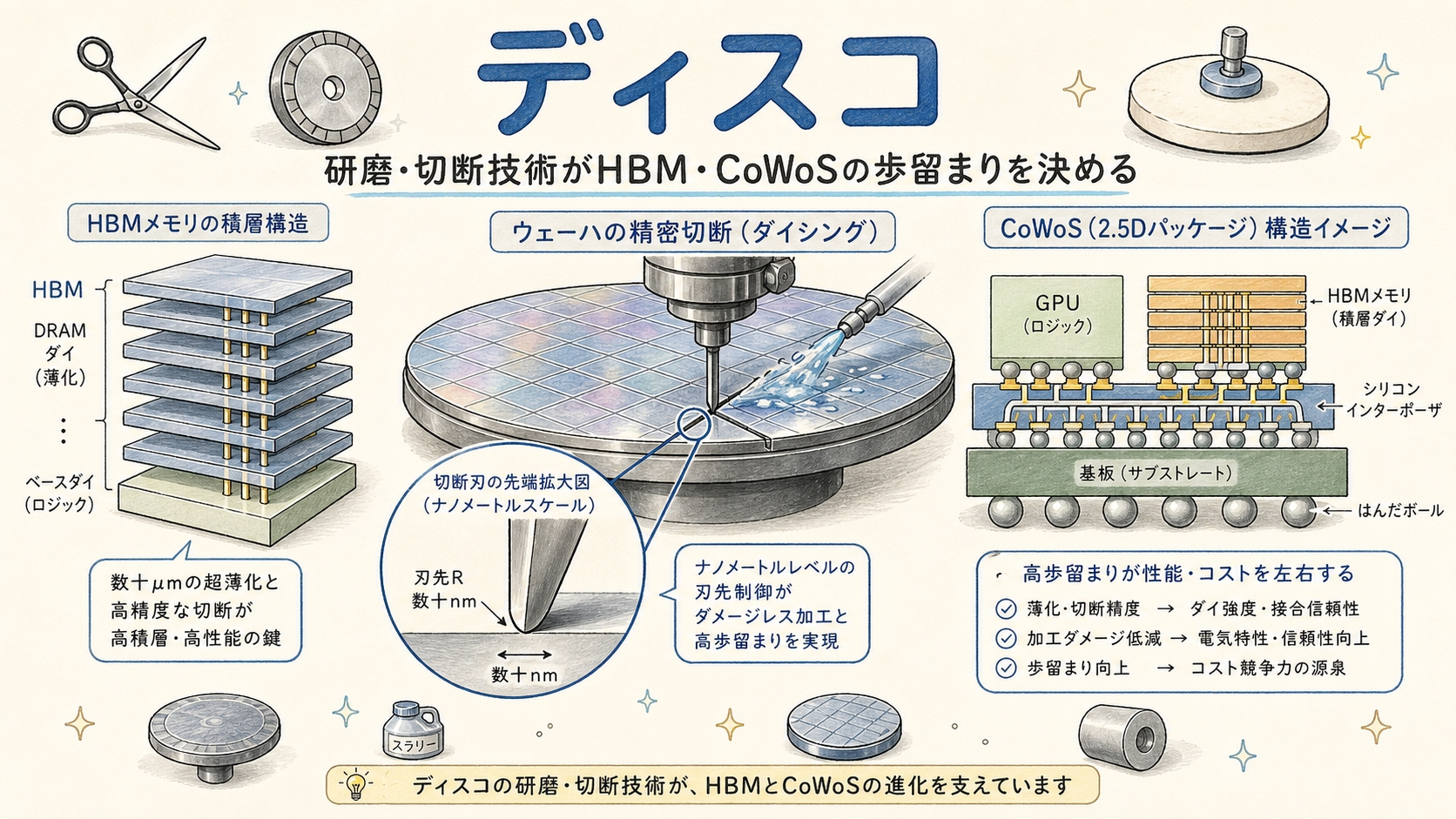 なぜHBM・CoWoSにディスコが不可欠なのか──技術構造を図解