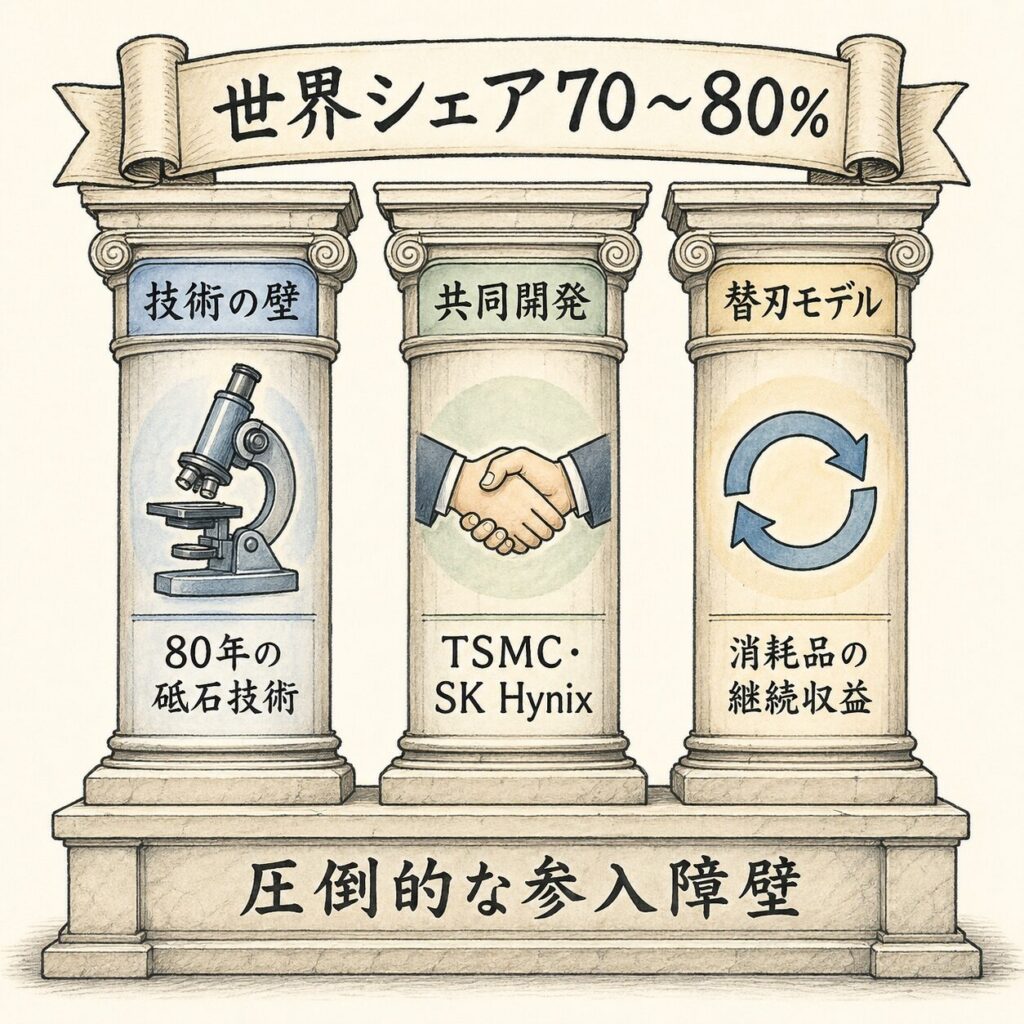 - 世界シェア7〜8割の独占的地位が成立する3つの構造的理由