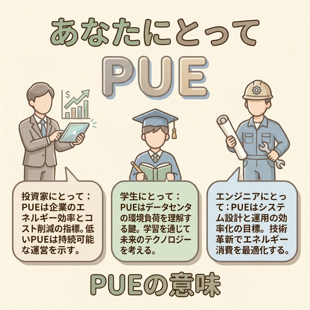 「PUE」という言葉、AIデータセンターの記事を読んでいると頻繁に出てきますよね。でも、こんなふうに感じていませんか?