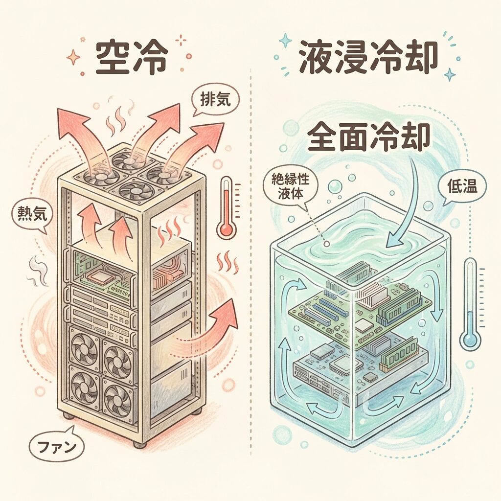 「そもそもなぜ液冷が必要なのか」を空冷の限界から理解する。液浸冷却が「次の一手」になる文脈がわかる。