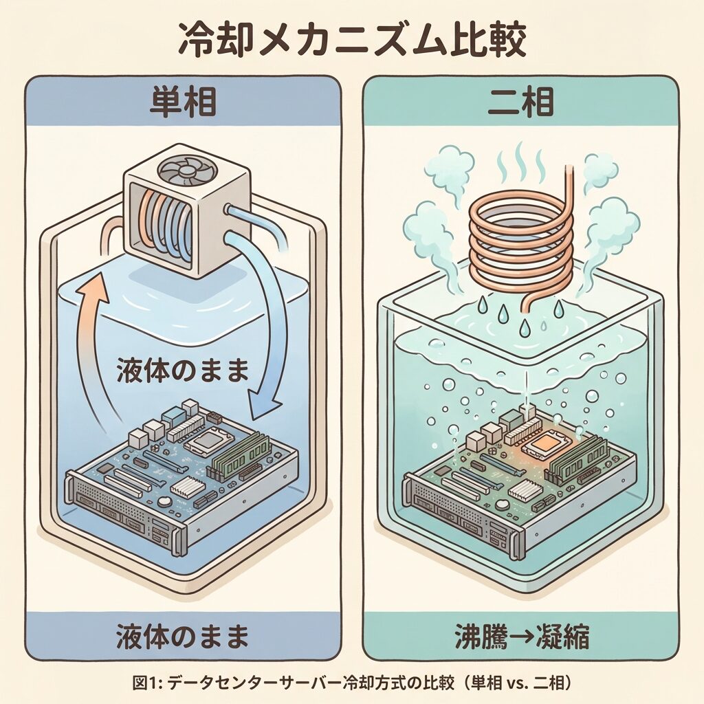 「液浸冷却に単相と二相があるらしいけど、何がどう違うの?」──そう感じたことはありませんか?