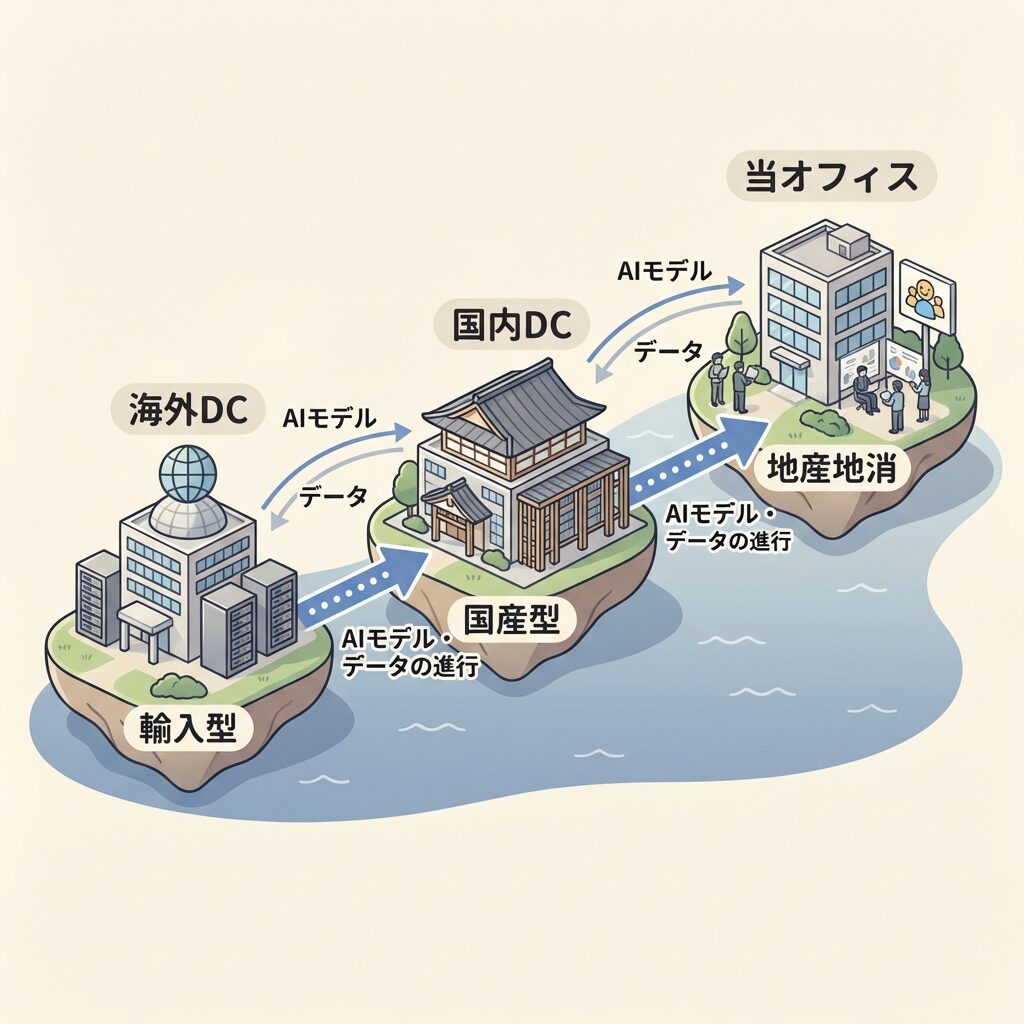 「地産地消」といえば農業の言葉ですが、AIの世界でも全く同じ現象が起きています。海外の巨大IT企業(メガクラウド)が作った万能AIに頼るのではなく、「自分たちのデータを使って、自分たちの手元でAIを動かす」という考え方です。
