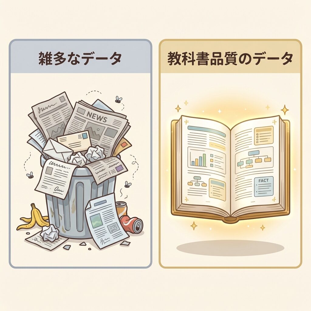 SLMの性能を劇的に引き上げた技術的ブレイクスルー、それが「教科書品質(Textbook Quality)のデータによる学習」です。Microsoftの「Phi」シリーズなどがこの手法で世界に衝撃を与えました。