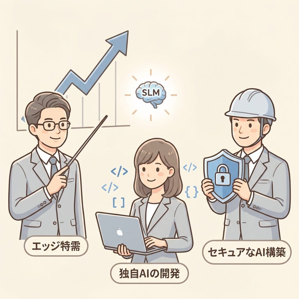 - SLMの普及により、企業は「安全で無料の社内専用AI」を手軽に作れるようになった