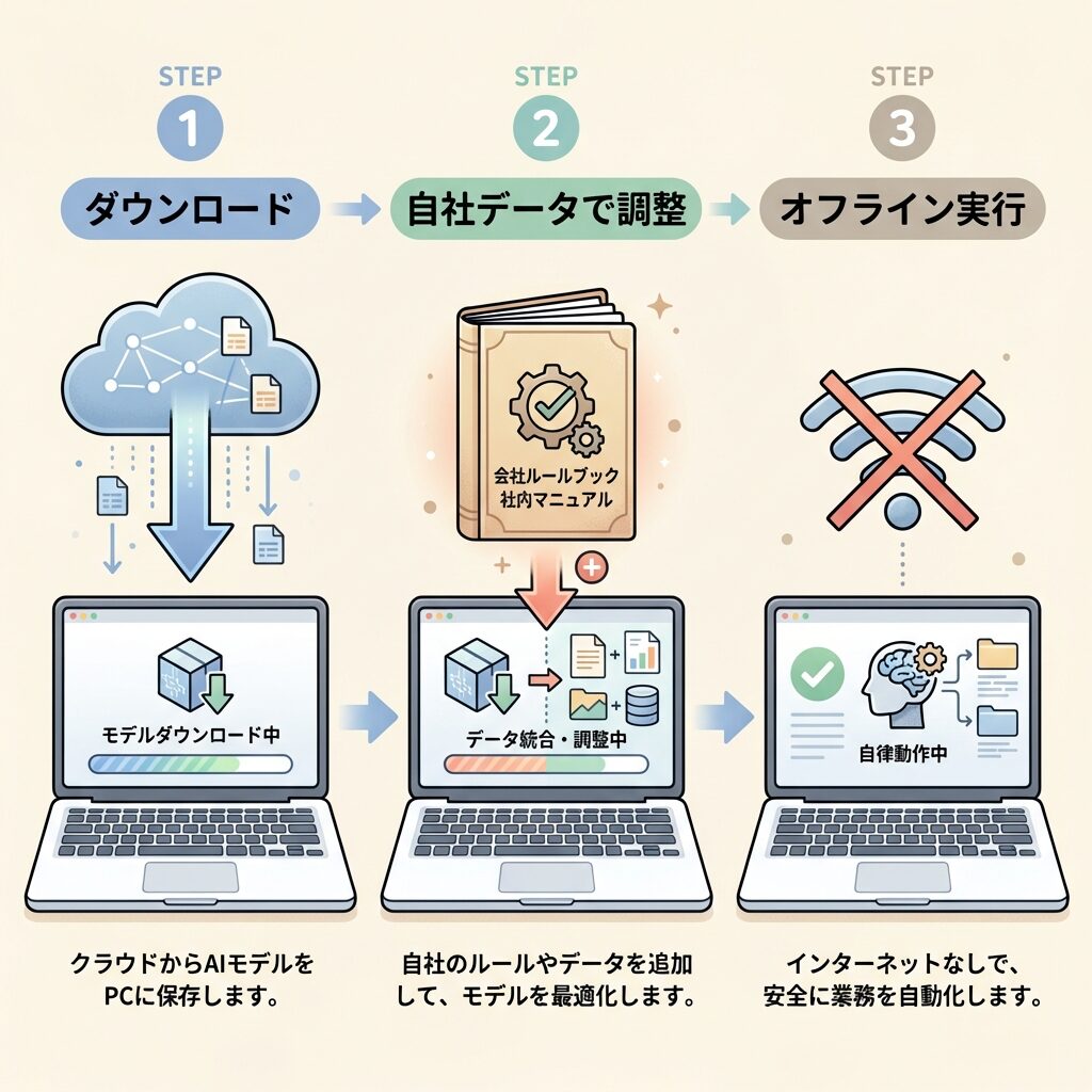 実際に企業や個人がSLMを使う場合、どのように進めるのか。シンプルなフローを見てみましょう。