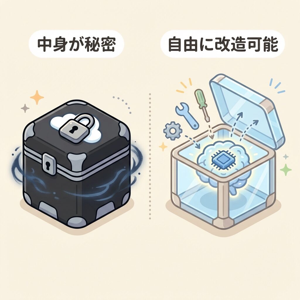 | 動作環境 | 巨大なクラウドDC(GPU必須) | 個人のPC・スマホ・AI PC |