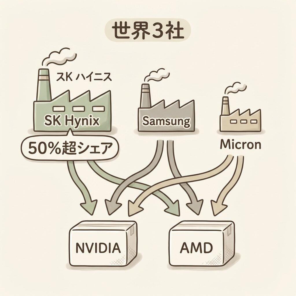 HBMを作れるのは世界3社だけ:市場構造と競争