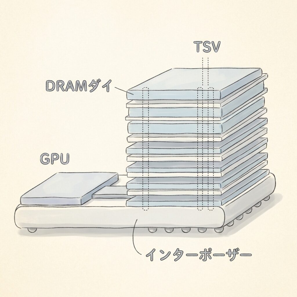 HBMの仕組み:3D積層・TSV・インターポーザーを図解
