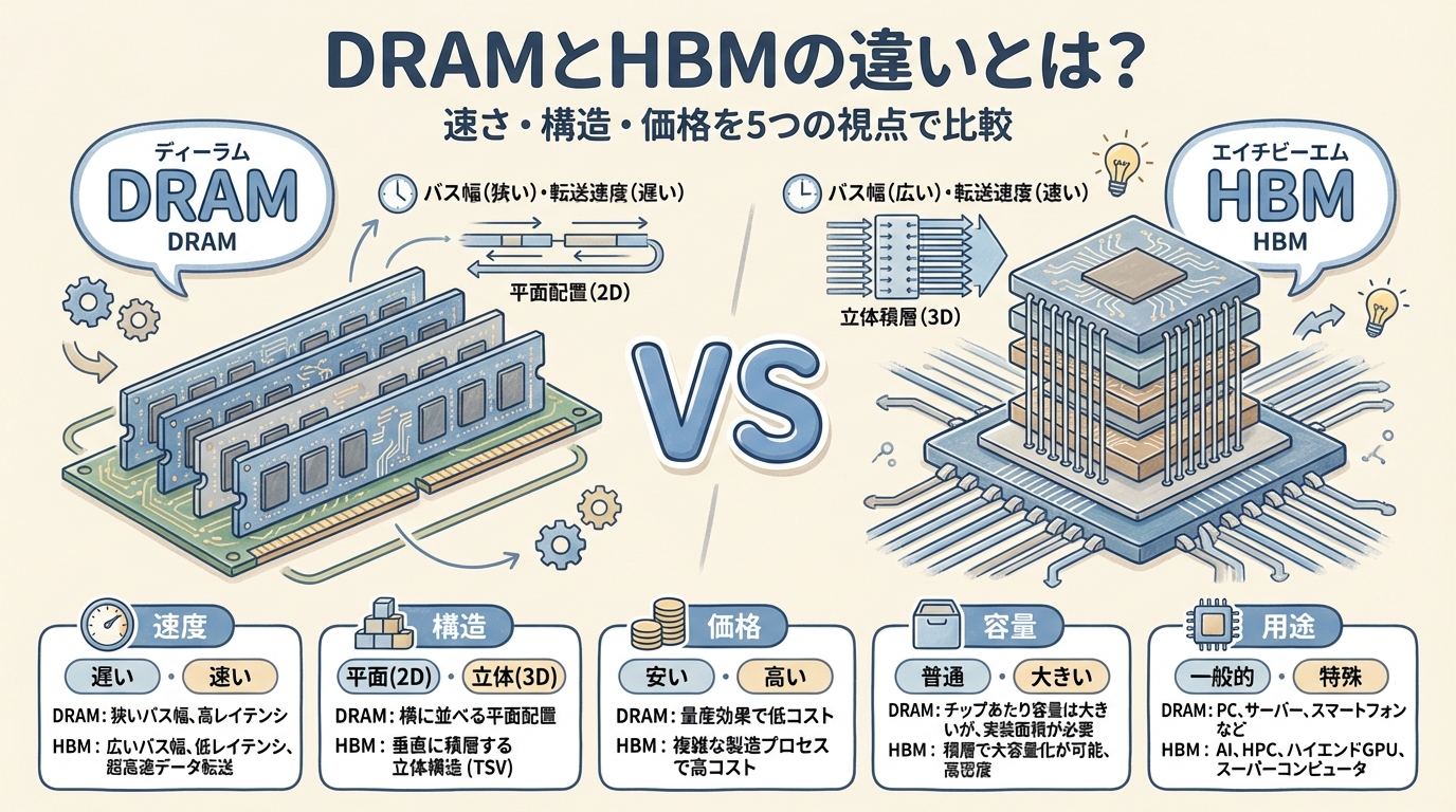 「HBM」という言葉、AIやGPUの話題でよく目にするようになりましたよね。でも、こんなふうに感じていませんか?