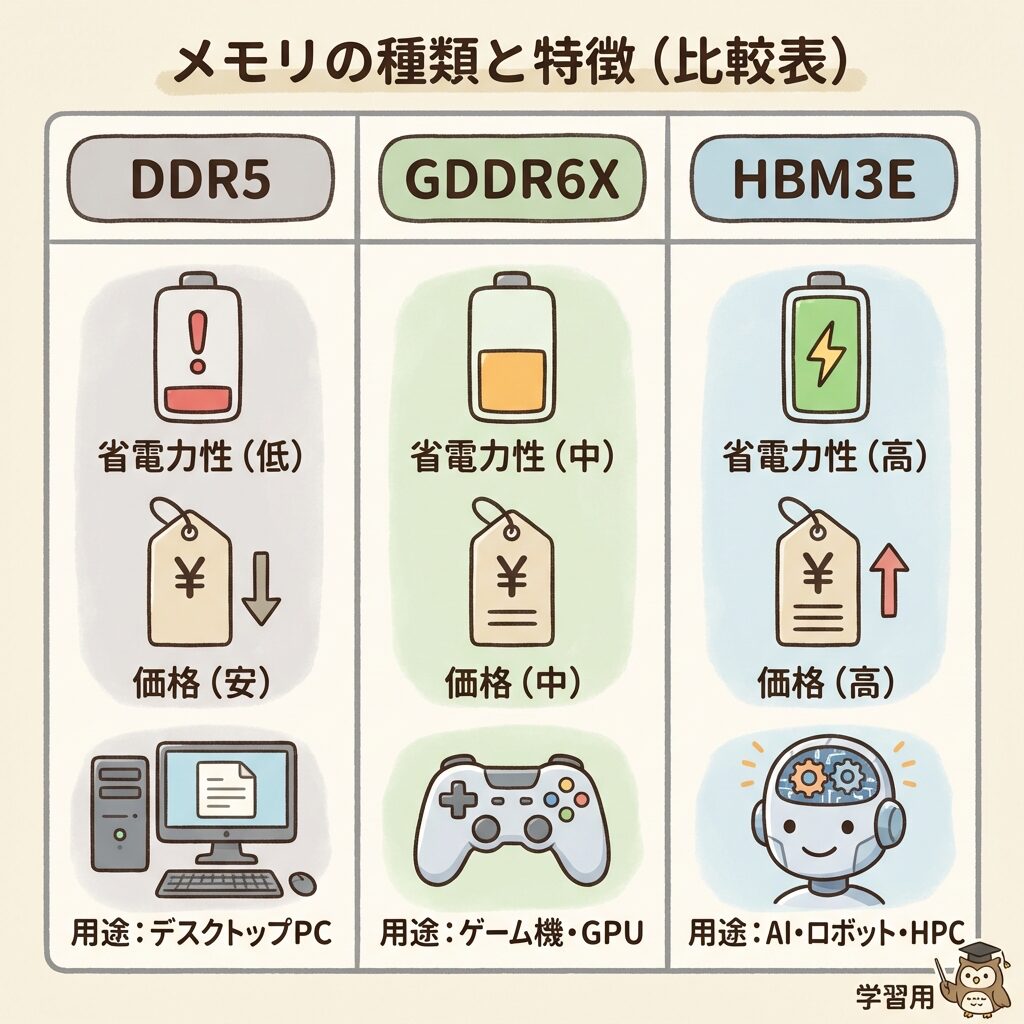 | 比較視点 | DDR5 (PCメモリ) |