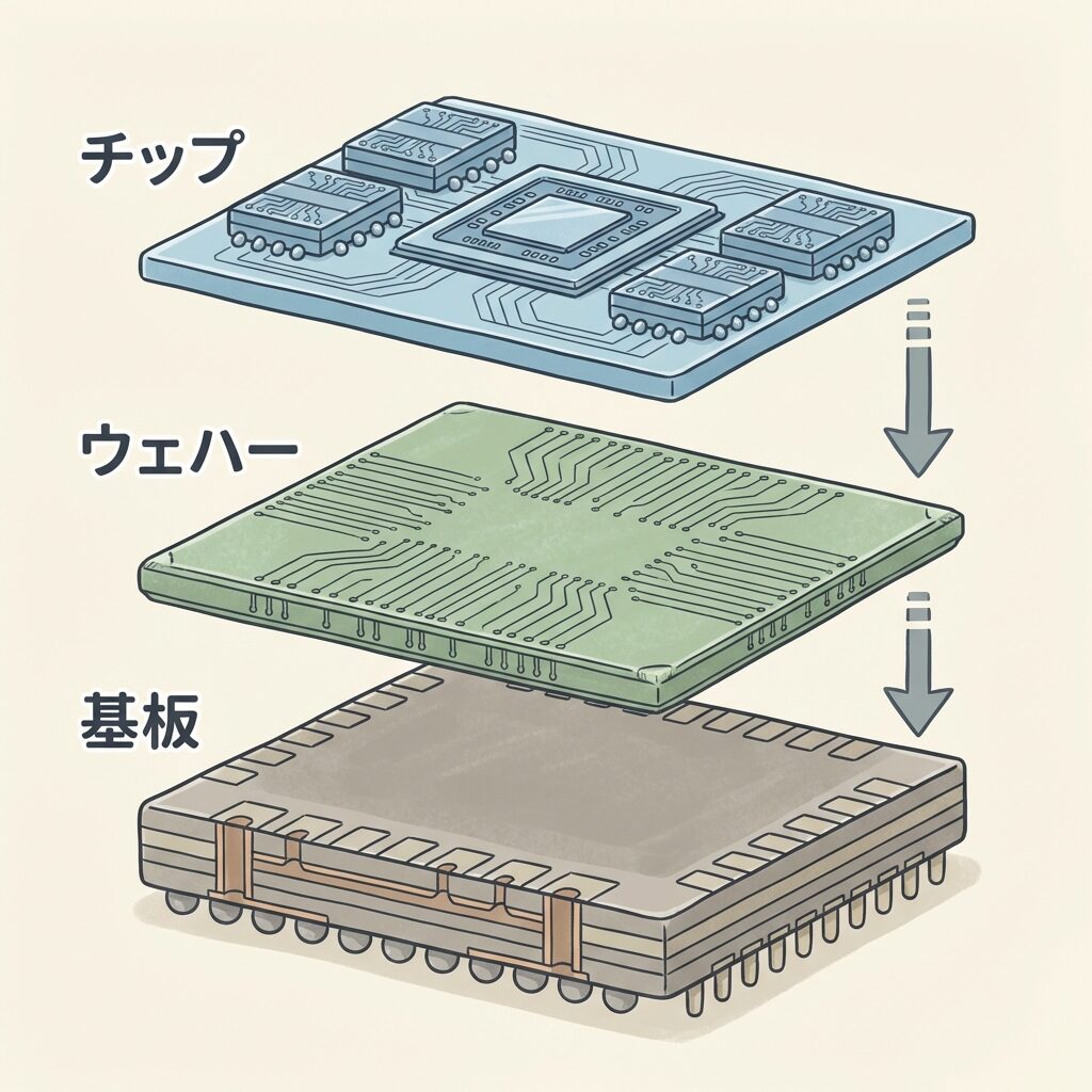 🔬 「ウェハーの上でチップを組み立て、基板に載せる」