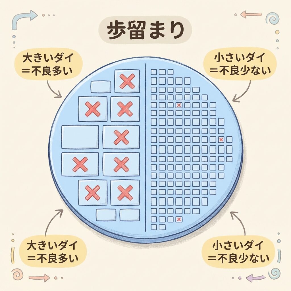 歩留まり 大型ダイほど低下 小型ダイで高い