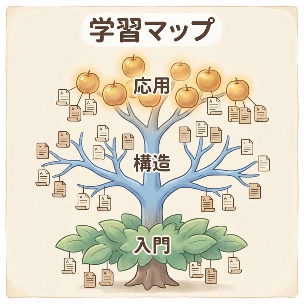 ✏️ ひとことメモ  記事は順番に読む必要はありません。どの記事にも「前提知識の記事へのリンク」が入っているので、途中から読み始めても「ここが先にわかっていると理解しやすい」というガイドに従って戻れます。迷ったらこのロードマップ記事に戻ってきてください